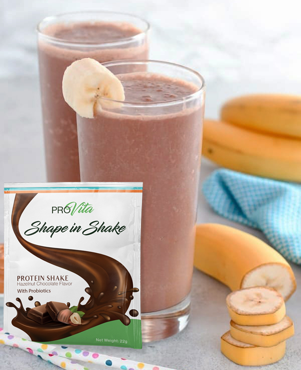 Bananas are a good source of energy for the body, perfect for eating after a workout. Adding bananas to a protein shake does not change the value of the protein in the shake. The mild flavor of a banana pairs well with shape in shake chocohazelnut flavor. It also adds potassium and fiber to the protein shake.